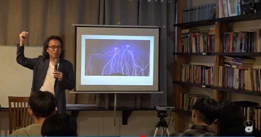 第二場:「跨文化推動哲普的困難」(主講:葉浩)(圖:李峻瑋同學主持葉浩教授的演講) |