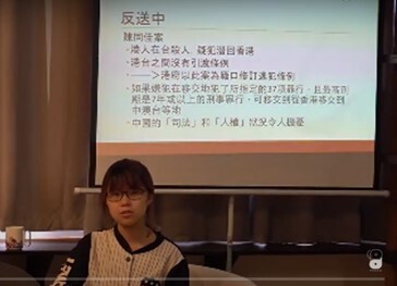 (主講人之一:何泳彤,在台香港學生及畢業生逃犯條例關注組發起人,文大哲學/美術系雙主修) 泳彤同學落落大方,2018年曾在國際柏拉圖學會第二次亞洲地區會議(The 2nd Asia Regional Meeting of the International Plato Society, https://sites.google.com/view/ips-asia-2018) 擔任英文導覽,引導學者們參觀文大的華岡博物館。現已畢業。 |