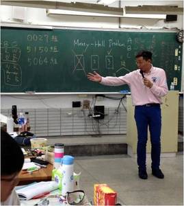 傅皓政老師(圖中著粉紅色襯衫的講者)也擔任活動講師。皓政老師在我們系負責邏輯、科學哲學、死亡哲學等課程。台大也請他開課,他的邏輯課在「台大開放課程」中非常受歡迎呢! |