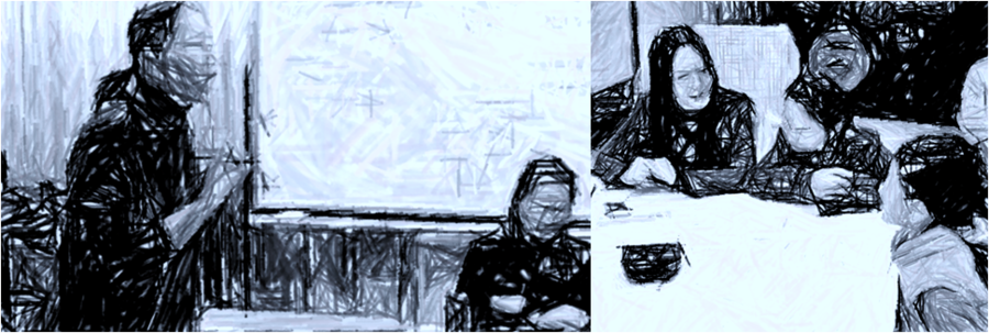 在我們的課程裡,陳佩君老師長期與業師(包括讀寫教學、出版業、繪本與文創設計等等專業人員)進行合作,開設改寫經典與哲學讀寫教學的課程;古秀鈴老師則從「哲學諮商」課程經營哲學的實務區塊。